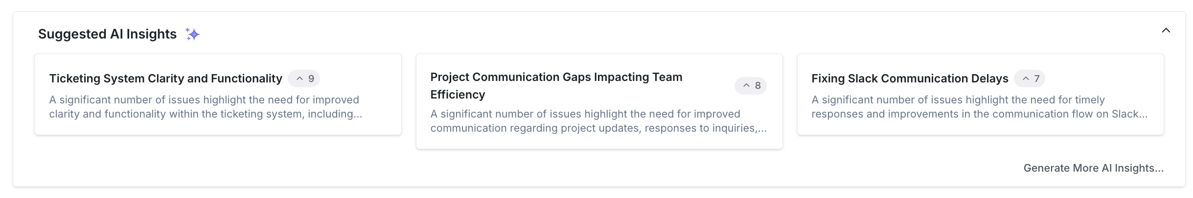 Every time you navigate to the product insights tab, our AI will automatically generate a set of insights for you. To see more than top 3 insights being displayed, click the “generate more insights button