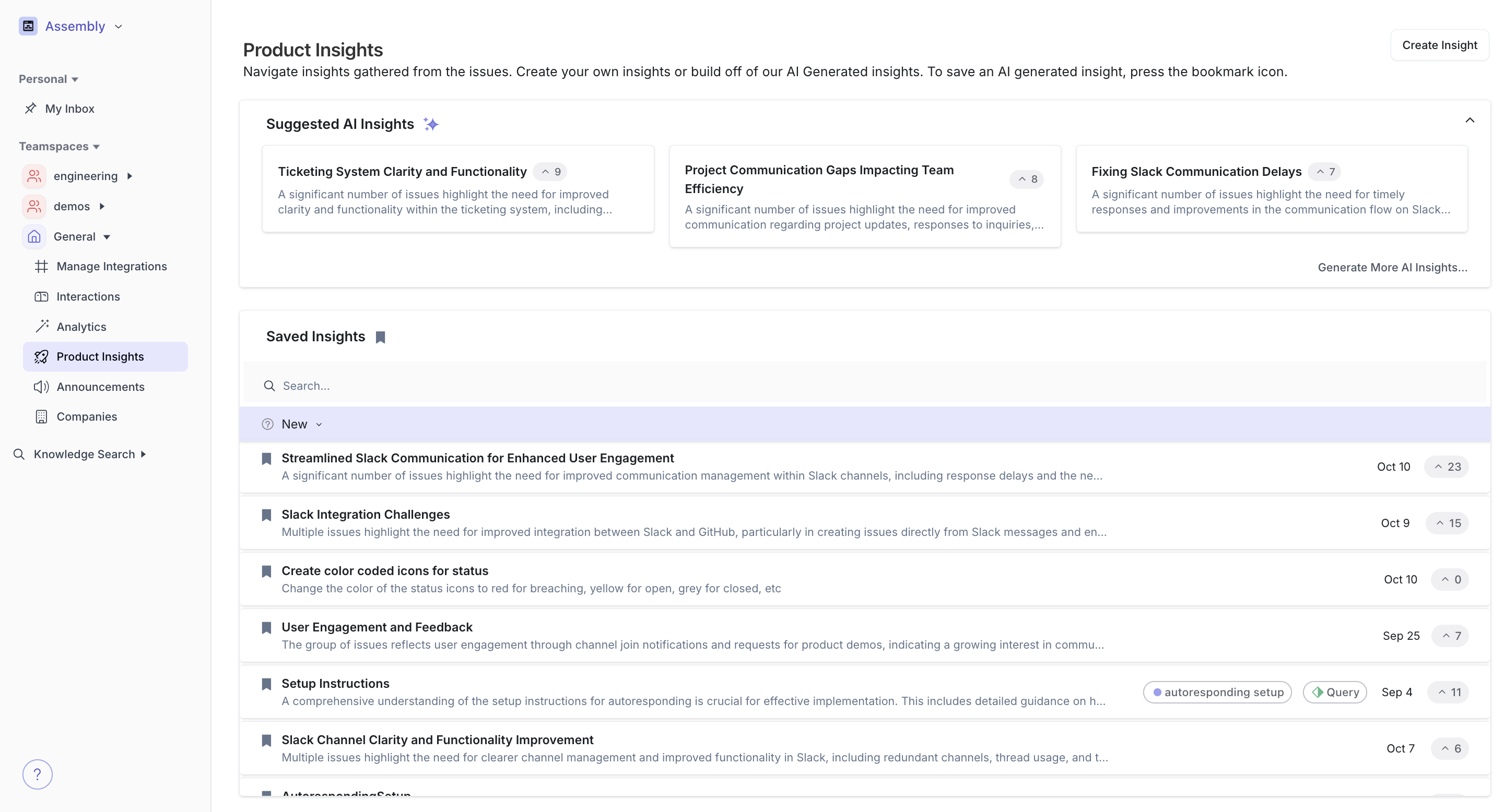 To create an insight, click on the “create insight” button on the top right of the product insights.