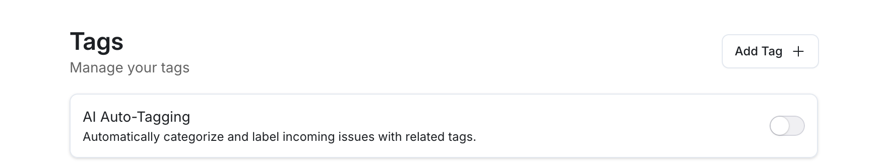 Request type Interaction Tag is about the product this support request is about. Examples of these tags are “billing”, “account management”, “authentication”, and more. You can turn on AI auto-tagging for these topic labels by clicking on the AI-Autotagging toggle!